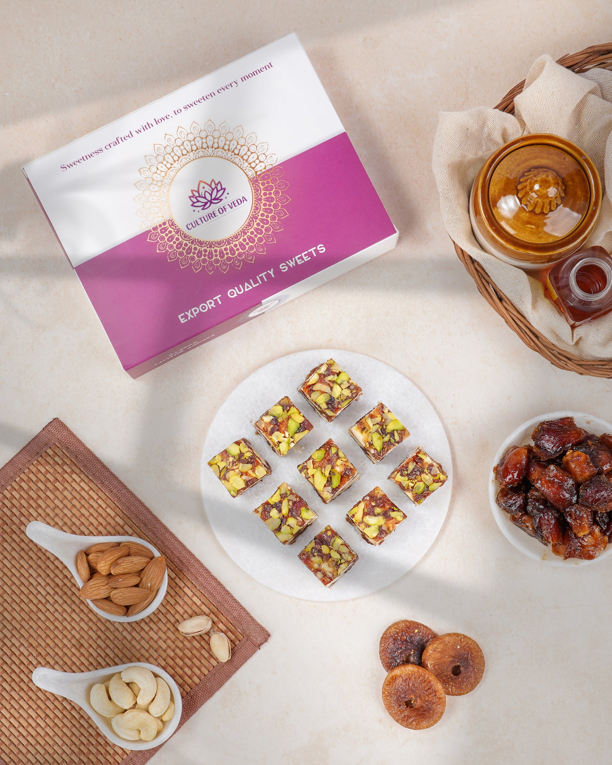 Anjeer Dryfruit barfi is a classic premium sweet from Gujarat, known for its rich taste and nutrition value.
